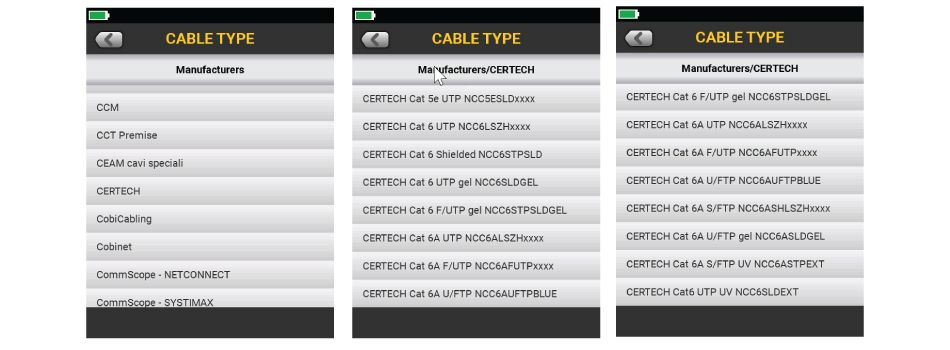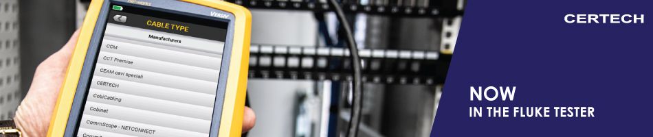 The Fluke Cable Analysers are the market-leading diagnostic tools for structured cabling certification. These testers allow the user to accurately measure the performance of a structured cabling system and compare it to a performance standard. In Australia, this is AS 11801 (1-6), or internationally as ISO/IEC 11801. With the latest firmware update (V6.8), the CERTECH range of cables is now available in the Fluke tester (DSX5000 and DSX8000) and can be selected from the main list. CERTECH is currently the only Australian company in the Fluke Tester, making CERTECH the best choice for structured cabling in Australia.