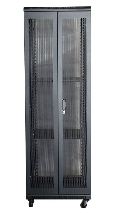 Perforated rear doors provide ventilation for servers and networking equipment. Both doors being split, reduces the need to have 800mm of space to open the door completely.