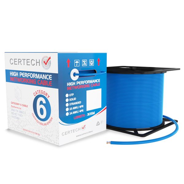 CERTECH 305M Cat6 U/UTP Solid Cable, Blue LSZH Jacket