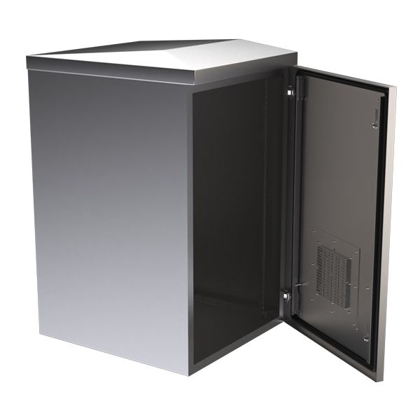 The cabinet design allows natural wind cooling through filtered vents on the front door and venting under the lip of the rain hood, which has a 25mm vented lip and is angled at 75mm, allowing for water run-off. The filters are conveniently located on the front door, allowing for easy access & servicing, without having to remove any rack-mounted equipment. - Front Door