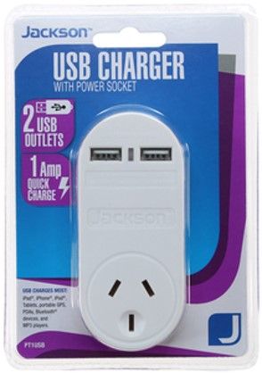 - Jackson 2 Port USB Charger with 1 Power Outlet
