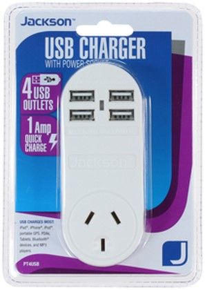 - Jackson 4 Port USB Charger with 1 Power Outlet
