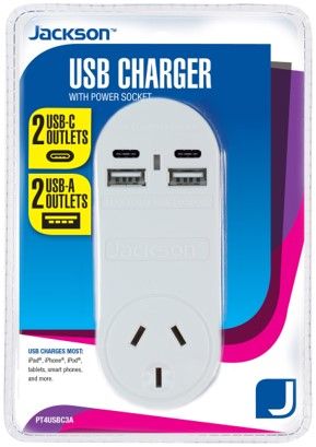 - Jackson 4 Port USB Charger with 1 Power Outlet