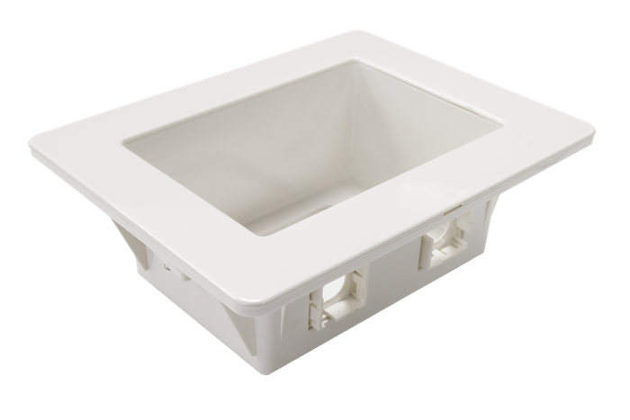 Designed to streamline your outlet installations behind appliances. Provides additional space for AV, Data, and electrical cabling. Installation is simple, and suitable for new builds or renovations.