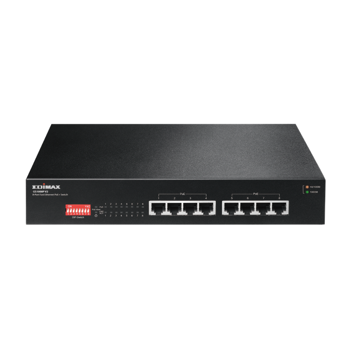 The Edimax GS-1008P V2 is a Long Range 8-Port Gigabit PoE+ Switch designed for use in home, small or