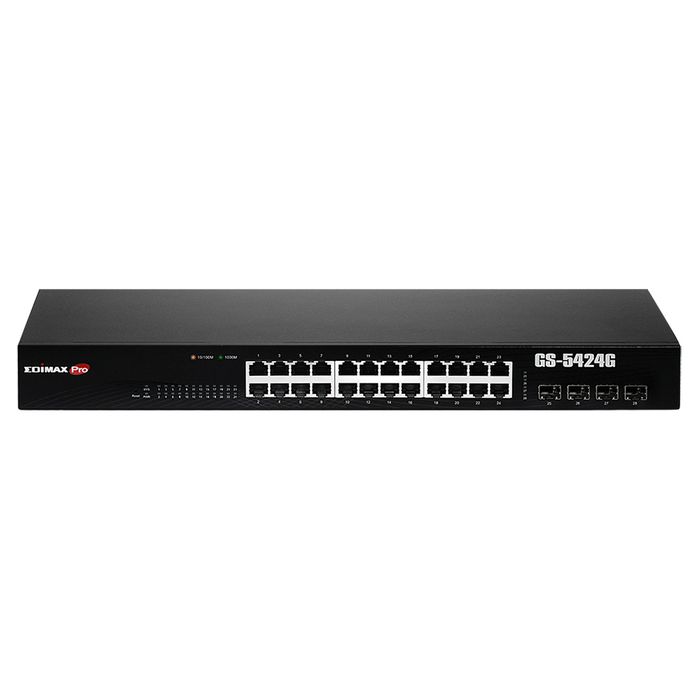 Complies with IEEE802.3/802.3u/802.3ab/802.3z Gigabit Ethernet Standards, the GS-5424G features 24 Gigabit Ethernet ports for high-speed, large file transfer and 4 SFP slots for long range optical fiber Gigabit Ethernet connections.
