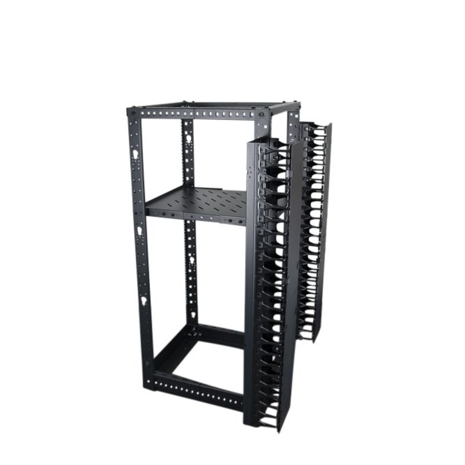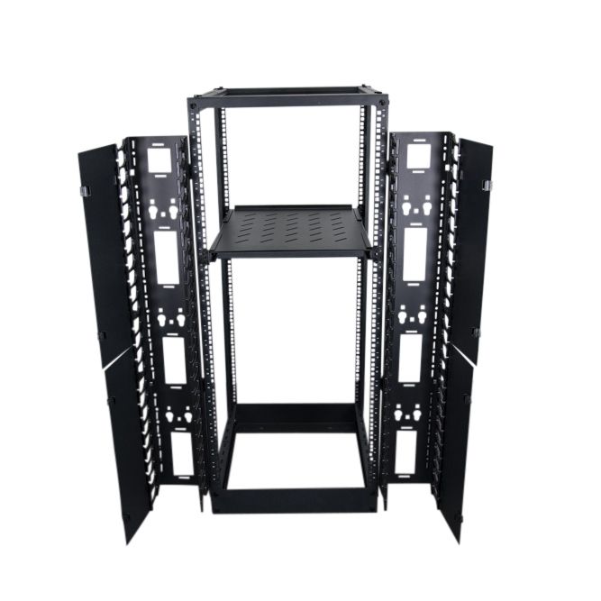 The 4 post open frame offers the strength and stability of an enclosure, whilst also providing easy access to equipment and cabling.