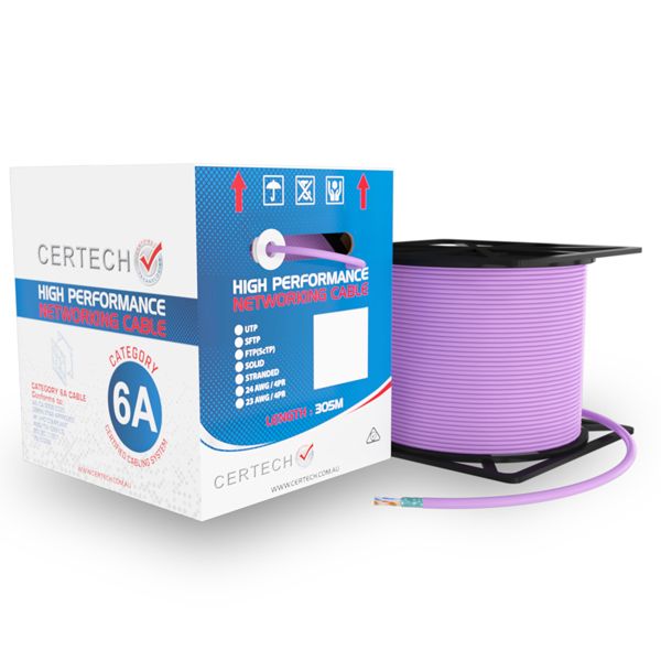 CERTECH 305M Cat6A 10G F/UTP Solid Cable, Purple LSZH Jacket