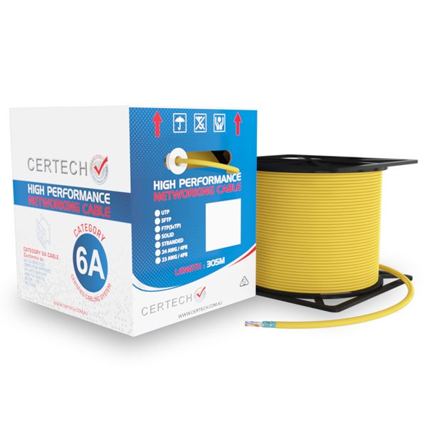 CERTECH 305M Cat6A 10G F/UTP Solid Cable, Yellow LSZH Jacket