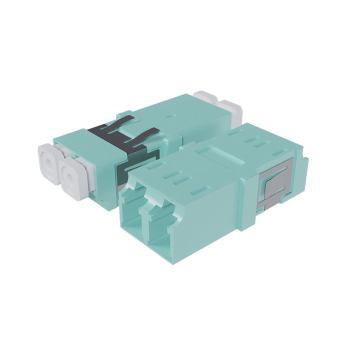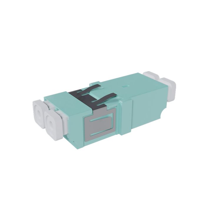 The Fiber Adaptor, LC Duplex OM3/4 (Aqua) - Flangeless, is designed to streamline and enhance fiber optic connectivity within your networking infrastructure. This LC (Lucent Connector) duplex adaptor is engineered to meet the specific requirements of OM3 and OM4 multimode fiber optic installations.