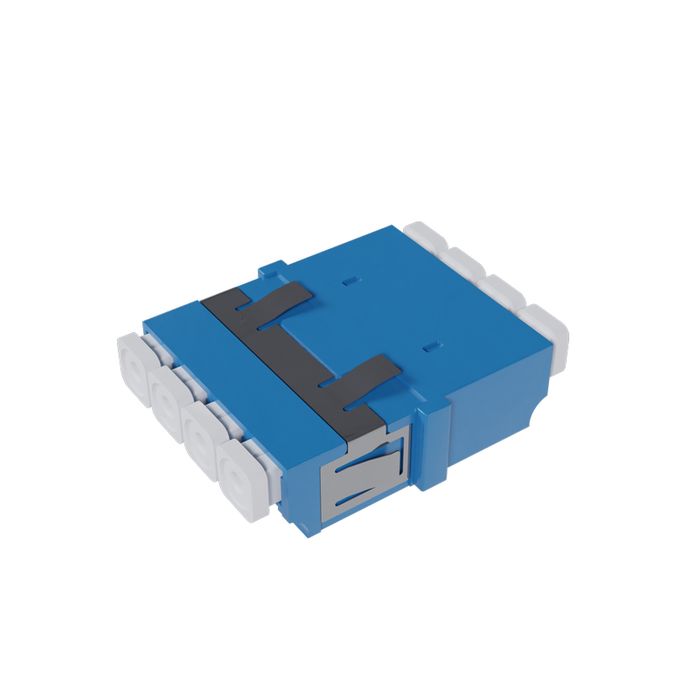 The Fiber Adaptor, LC Quad OS2 (Blue) - Flangeless, is designed to streamline and optimise fiber optic connections within your networking infrastructure. This LC (Lucent Connector) quad adaptor is engineered to meet the requirements of OS2 single-mode fiber optic installations.