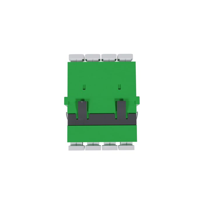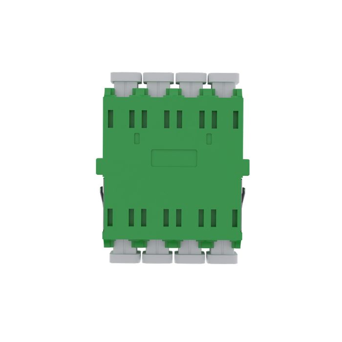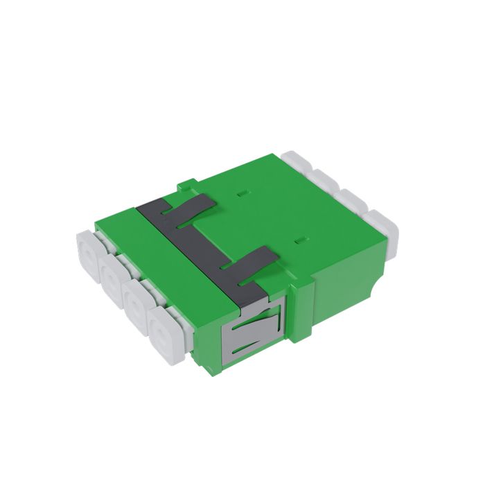 The Fiber Adaptor, LC APC Quad OS2 (Green) - Flangeless, is designed to facilitate efficient fiber optic connections in demanding networking environments. This LC (Lucent Connector) APC (Angled Physical Contact) quad adaptor is engineered to meet the stringent requirements of high-speed data transmission with precision and reliability.