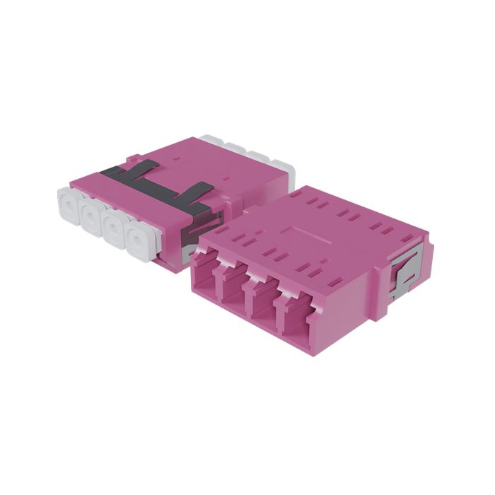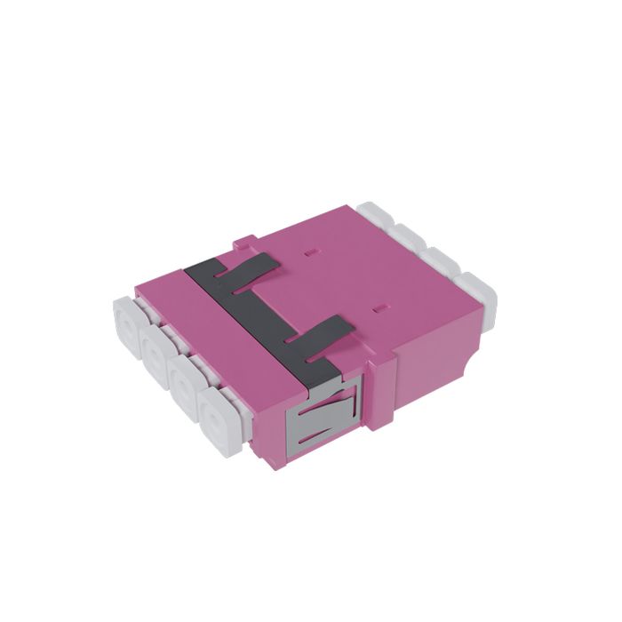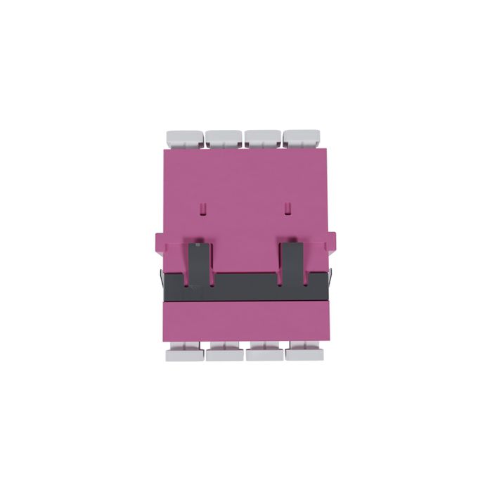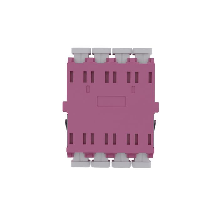 The Fiber Adaptor, LC Quad OM3/4 (Erica Violet) - Flangeless, is engineered to enhance and simplify fiber optic connections within your networking infrastructure. This LC (Lucent Connector) quad adaptor is meticulously designed to meet the specific requirements of OM3 and OM4 multimode fiber optic installations.