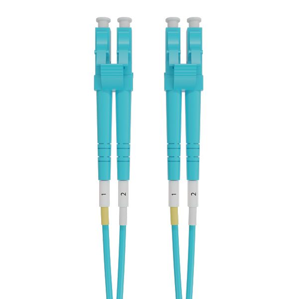 LC-LC OM4 Duplex Fibre Lead, Aqua LSZH Jacket - 5m