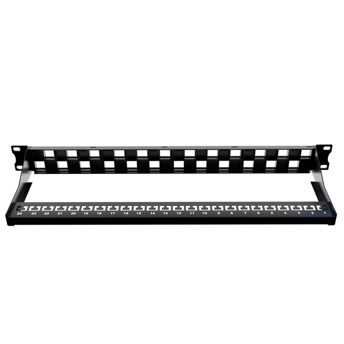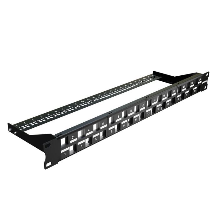 CERTECH 1RU 19" 24 Port Unloaded Staggered Patch Panel, with Rear Support Bar
