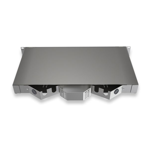 1RU Sliding Fibre Enclosure. Inc: 2 x 24F Splice Trays, Cable Ties, Hook & Loop, Routing Rings, Cable Glands & 48 x Splice Protectors