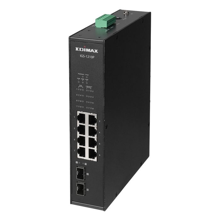 EDIMAX 8 Port Gigabit Industrial PoE Switch w/ 2 SFP Ports, DIN-Mount (240 Watt)