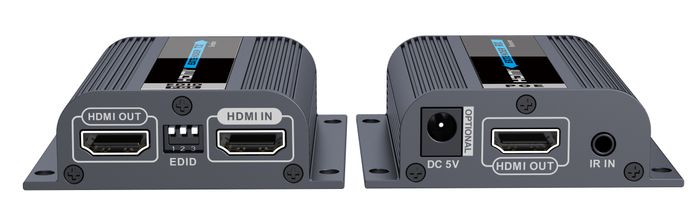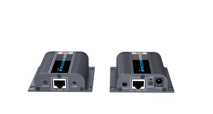 The HDMIEXT40-EDID includes a transmitter unit (TX) and a receiver unit (RX), working as a pair. It allows for transmission and extension uncompressed full HD 1080p@60Hz HDMI signal via CAT6/6A network cable. The transmission distance is up to 40 metres.