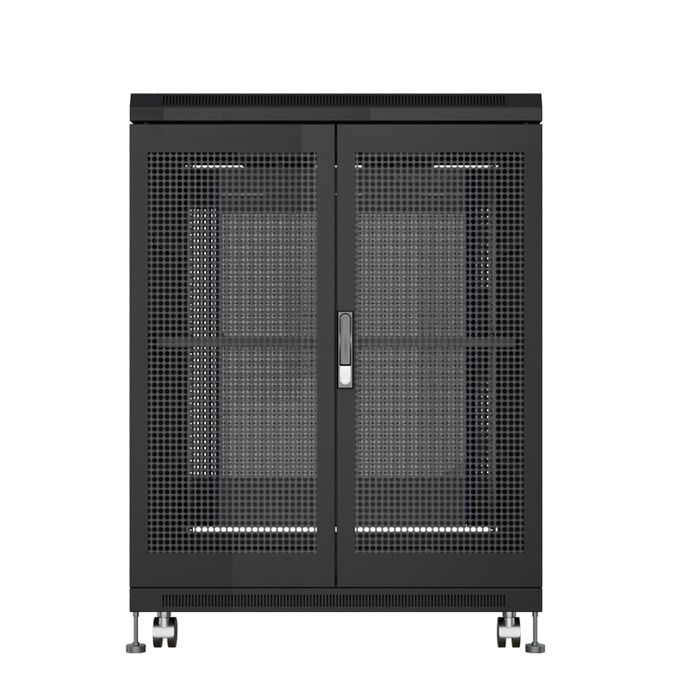 Perforated rear doors provide ventilation for servers and networking equipment. Both doors being split, reduces the need to have 800mm of space to open the door completely.