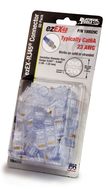 Platinum Tools ezEX48 RJ45 CAT6A Connectors, 50pc Clamshell