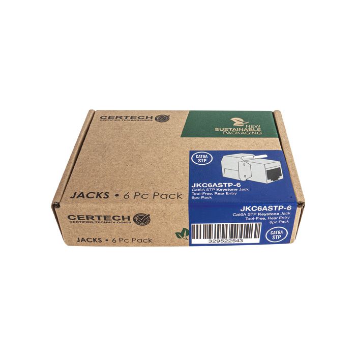 CERTECH Cat6A STP Keystone Jack, Tool-Free, Rear Entry - 6pc Pack