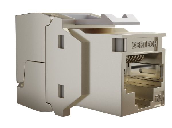 The CERTECH Cat 6A shielded RJ45 keystone jacks feature a tool-less style termination to reduce termination time, fully enclosed IDCs for optimum performance and reliability, and dual earth connection points to ensure a robust, reliable connection. When combined with a CERTECH Cat 6A shielded cable and installed by a CERTECH certified installer, the permanent links exceed the performance criteria outlined is AS 11801 (1-6) and can be certified for a 25 year warranty under the CERTECH 25 year warranty program.