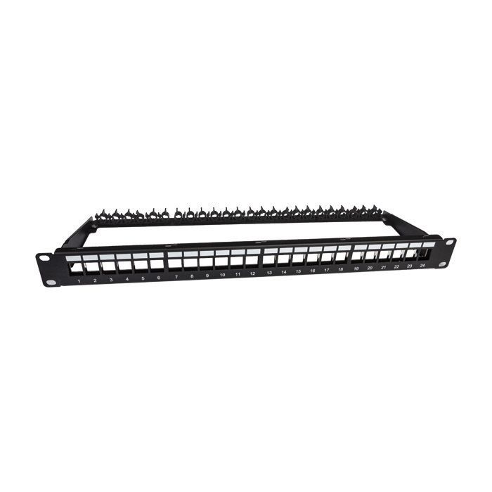 - CERTECH 1RU 19" 24 Port Unloaded Patch Panel and Rear Cable Support Bar with Cable Retention Clips